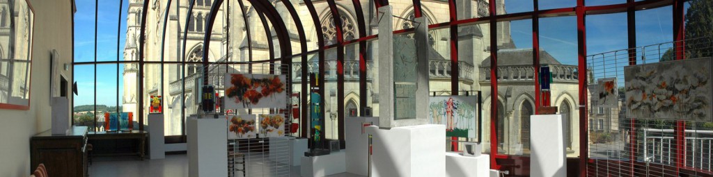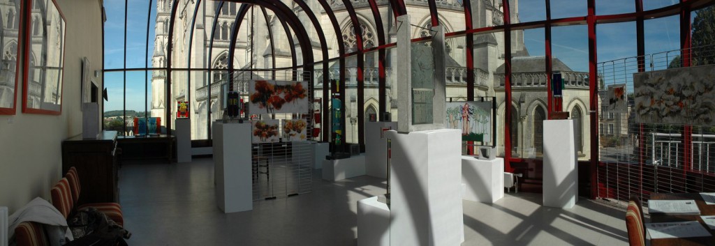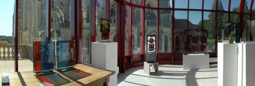 Le sanctuaire accueillait cette année là une rencontre d’artiste et d’amateurs d’art, cela dans une perspective de quête spirituelle. Pascale et moi avons investi un lieu étonnant, une verrière avec comme arrière plan l’architecture de la basilique. Ce lieu nous a permis de bien mettre en valeur les pièces en verre inondées de lumière.